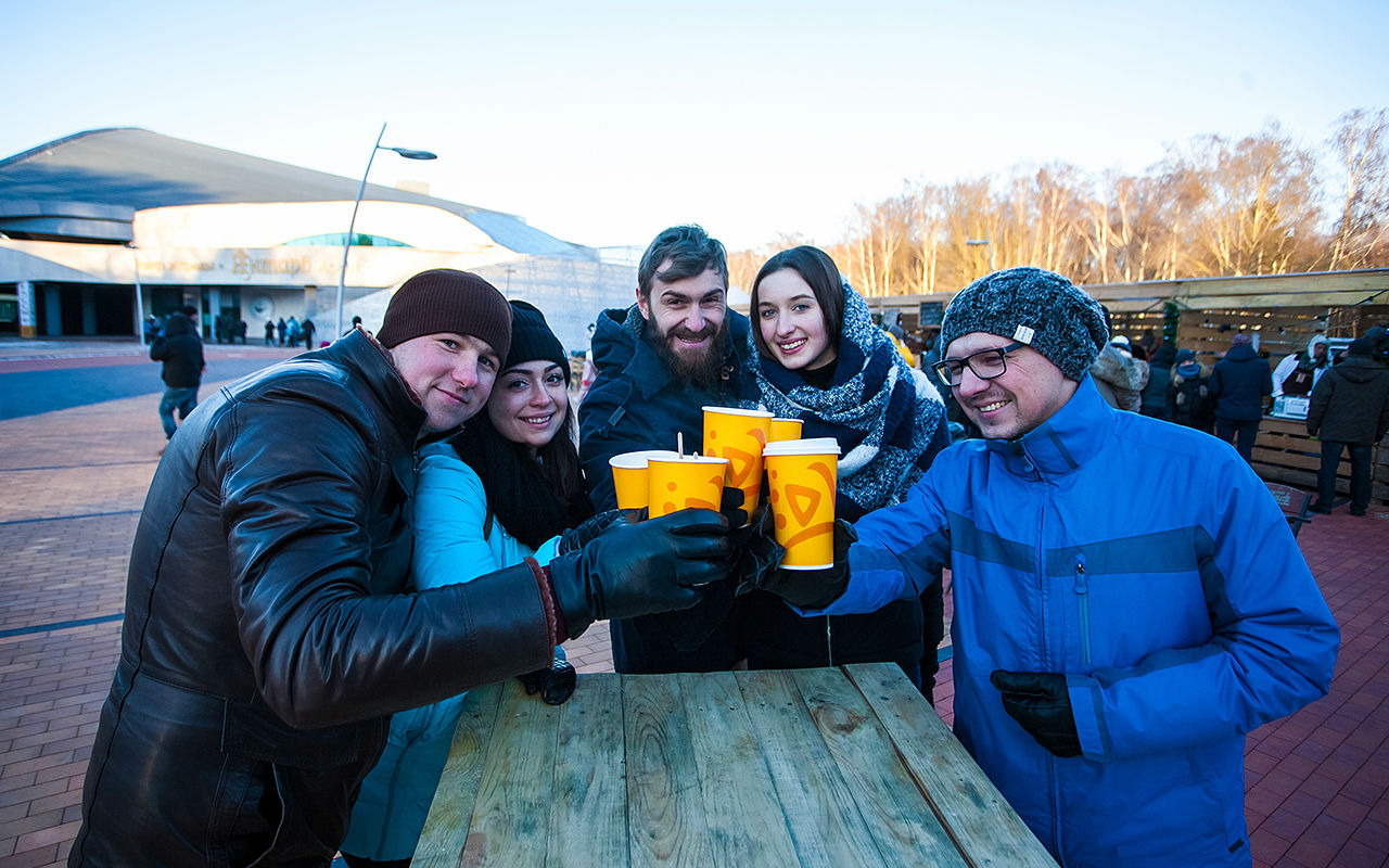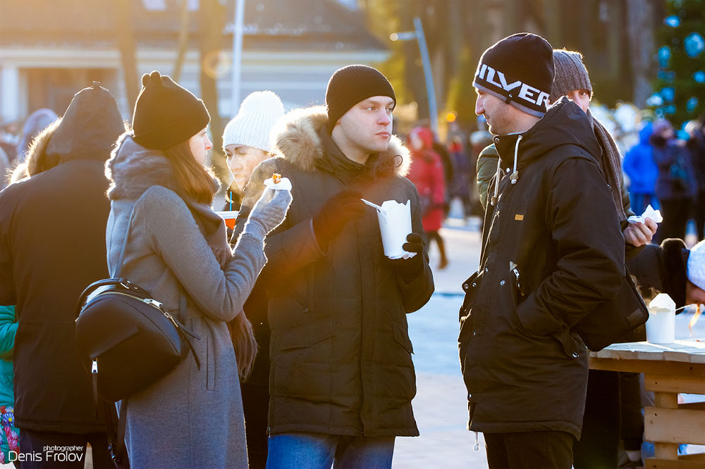Праздник зимних напитков, организованный Министерством по туризму Калининградской области совместно с командой Kaliningrad Street Food и театром эстрады «Янтарь холл», состоялся на этот раз на территории последнего. Узнаваемых деревянных палаток, в которых расположились на площади перед входом в концертный зал участники фестиваля, было заметно меньше, чем на последних «стрит фудах» в Калининграде. Тем не менее, было из чего выбрать: на Празднике зимних напитков готовили и бургеры, и бутеры, и паннини, и хот-доги с шашлыками, и супы. Среди прочего, каждый проект представил свои варианты согревающих напитков - от глинтвейнов до чаев - так что недостатка в пище совершенно не ощущалось.