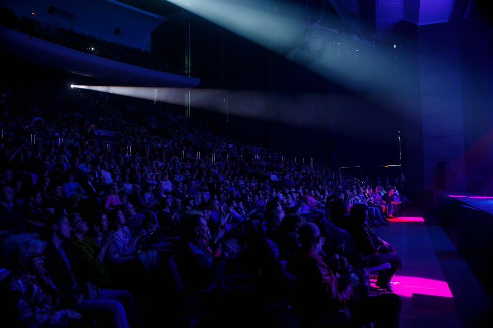 Среди изъятых из карманов посетителей бутылок с водой и минералкой возле металлоискателей у восточного входа в «Янтарь холл», красуется початый шкалик Hennessy – публика в зале собирается явно разношерстная, от простых работяг, работников авторынков и мелких предпринимателей до первых лиц региона. В партере можно заниматься правительственным «селебрити споттингом»: вот в зал зашел бывший мэр, вот с семьей по центру уселся нынешний губернатор, счет присутствующих депутатов идет на десяток. «Любэ» выходят на сцену под записанное вступление: закадровый голос зачитывает ностальгический текст про то, как «мы встретились с тобою», бессменный лидер группы Николай Расторгуев берет гитару в руки и затягивает песню «Ах, заря-заря». Характерный саунд «Любэ» окутывает заполненный «Янтарь холл», переборы акустической гитары, звуки баяна, теплые, хрипловатые интонации Расторгуева на раз растапливают сердца слушателей, взрывающихся аплодисментами под конец номера. Расторгуев спрашивает, как дела со звуком в зале, и получает в ответ шквал одобрительных возгласов. «Наша мечта – посмотреть наш собственный концерт из зала, - делится он со зрителями. – Но пока что технологии этого не позволяют». Группа действительно звучит очень хорошо, разве что лид-вокал на первых нескольких композициях немного тонет в общем миксе, однако вскоре все гармонично выстраивается.