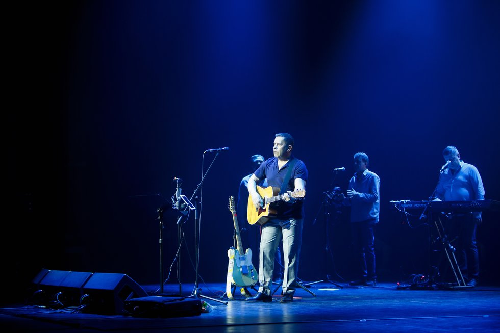 «Любэ» исполняют знакомую песню, которую, по собственному признанию, раньше не играли: «Орлята учатся летать» они посвящают российским летчикам, проведшим военную операцию в Сирии. В зале кто-то выкрикивает: «Про моряков давай!», гитарист «Любэ» берет первый аккорд «Там, за туманами», а Расторгуев делает характерный жест, мол, вот, пожалуйста. Вообще, стоит признать, что вокалист и лидер «Любэ» - один из наиболее нетипичных фронтменов в истории отечественной популярной музыки: низенький, коренастый, насупленный и строгий, но при этом бесконечно обаятельный и харизматичный. Его общение с залом между песнями часто сводится буквально к одной-двум обрывистым фразам, но этого хватает с лихвой, он не совершает лишних движений, но держится необыкновенно естественно.