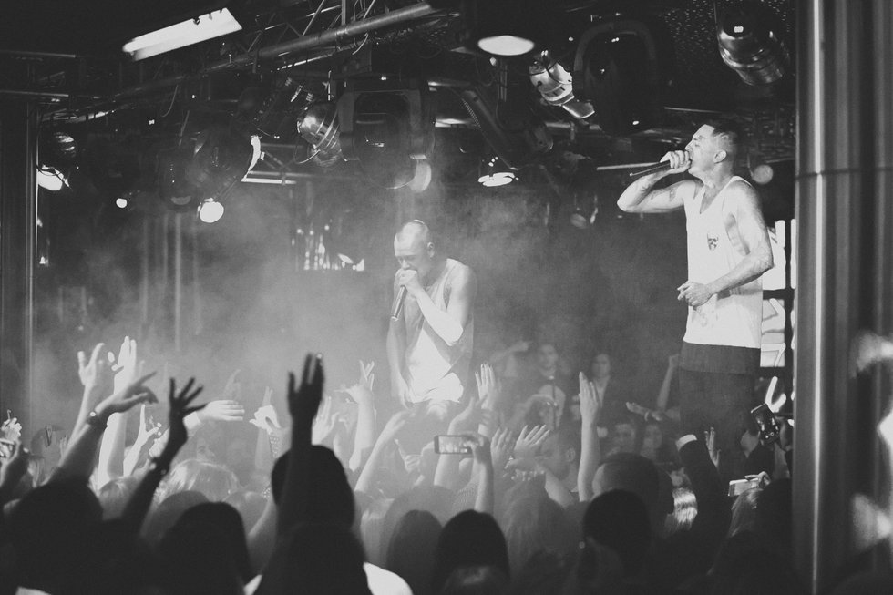 Для первого живого выхода рэпера в Калининграде было выбрано место проверенное и намоленное: клуб Platinum принимает артистов Black Star с изрядным постоянством, и за долгие годы сотрудничества здесь перебывал практически каждый из пула лейбла. Ко всему прочему, недавно к Black Star Inc. присоединился резидент клуба Артем Лоскин, в последние три года заводивший пластинки в «Платинуме» практически каждые выходные. С весны этого года имя DJ Losikin упоминается в непременной связке «официальный диджей Скруджи», он гастролирует вместе с рэпером и помогает «на бэках», читает вместе с ним. Он же в полвторого ночи первым выбегает на сцену уже достаточно плотно заполненного к этому времени клуба и сразу же стартует с оглушительного «мясного» трэпа и EDM.