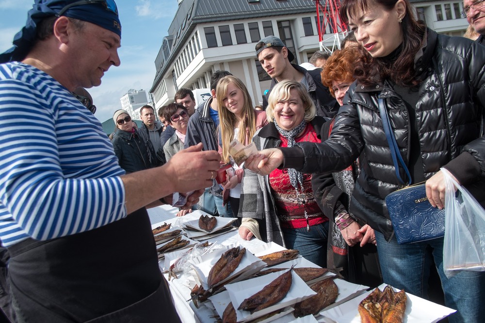 Еще один вопрос, не имеющий отношения к экспозиции, но который неизбежно задавали друг другу гости музейной ночи: «Почему мы не додумались поесть там, а не здесь?» Все дело в том, что наиболее выгодное место под кейтеринг – прямо возле «Витязя» - было отдано группе компаний «Табаско», где они и готовили свою нехитрую снедь. Всего в ста метрах дальше по набережной функционировал стрит-фуд маркет, чье предложение еды было куда более обильным, интересным и местами даже доступным. Во внутренней навигации музейной ночи он не был отмечен никак, процентов 90 посетителей поначалу попросту не знали о нем, не видя альтернативы и неизбежно шагая к зоне «Табаско». Впрочем, на успехе стрит-фуд маркета это никак не сказалось – компания там собралась душевная, позитивная и, может быть, даже вполне довольная своей геолокацией вдали от основных шумных толп.