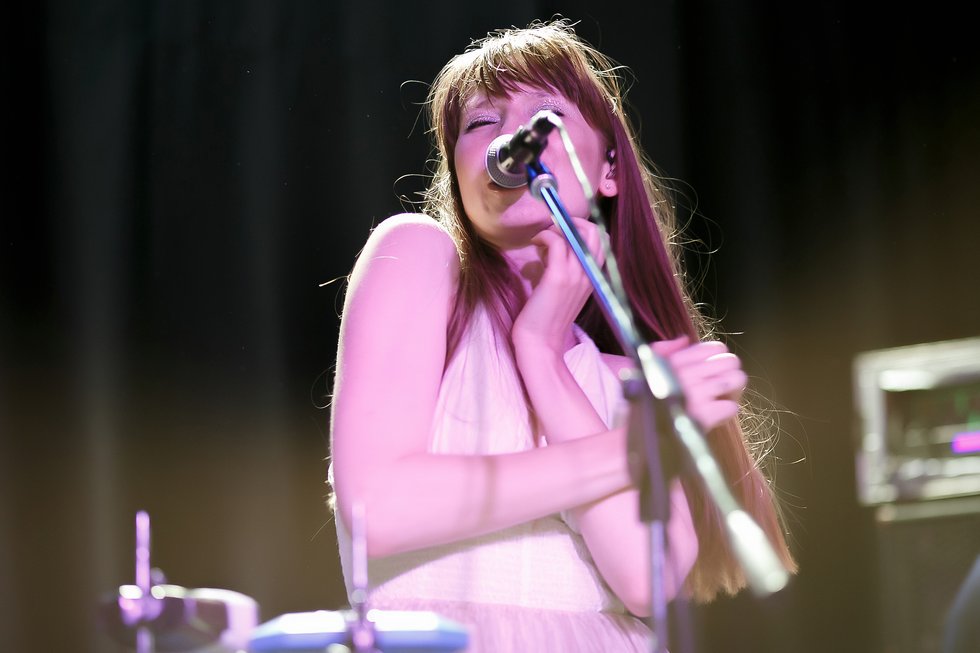 Начало, и правда, затягивается. Когда на сцене появляются гитаристка, барабанщик и сама Катя, на танцполе по- прежнему свободно и тихо – лишь раздается робкий шепот. У Кати челка, она лучезарно улыбается и начинает петь песню Майи Кристалинской: «У тебя такие глаза, будто в каждом по два зрачка». Вокал звучит мощнее, чем на записи. Катя танцует, закрыв глаза, двигает руками в каком-то ей одной известном ритме, и, кажется, очень наслаждается происходящим. Первые несколько песен она существует будто бы отдельно от музыки, текста, зала и этой планеты – красивая, в струящейся юбке, и с таким милым, очень женским задором. Во всем этом Катя выглядит естественно и органично – добрую половину концерта наблюдаешь за ней одной. Поет она, улыбаясь, и это сказывается на интонациях. Несмотря на то, что в зале навскидку пара десятков человек, зрители легко танцуют, ободряюще визжат и громко хлопают. В паузы между песнями граница сцены будто стирается – девушки зовут Катю на море, и она звонко смеется. При этом становится несколько скучно: песни, кажется, слишком похожи друг на друга, хочется увлеченно следить не только за пластикой Кати. Драйва хватает только на самых преданных поклонников, которые дарят музыкантам и друг другу счастливые улыбки. В одном из недавних интервью Катя сказала: «Обожаю смотреть людям в глаза. Я чувствую от них отдачу и энергию, которая меня питает». Видимо, количество глаз не так уж важно – а все остальное на «Вагонке» было.