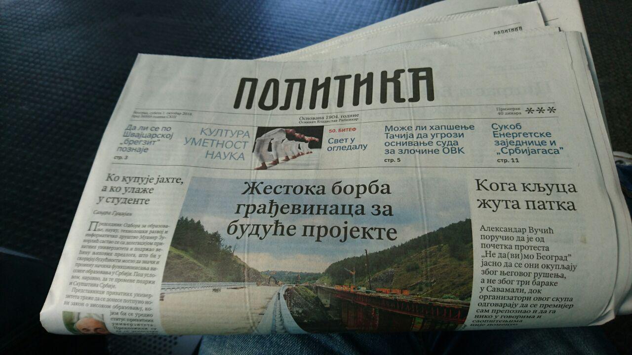 Я уже две недели в Сербии и не читаю никаких русских новостей. Чтобы узнать, чего в мире-то делается, я пошёл в газетный киоск и купил сербскую газету. Сербского я не знаю, но больше всего мне приглянулась новость про то, что покемоны угрожают культуре - их ловят в Освенциме, у мемориала бомбардировке Хиросимы. Сербская газета негодует, но, кстати, ничего не пишет про российского видеоблогера, который ловил покемонов в церкви. В остальном сербские новости неплохие. Погода хорошая, Новак Джокович опять победил, Лена Ковачевич выпустила песню на английском языке. Называется Pick Up (песня так себе).