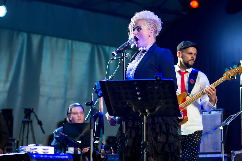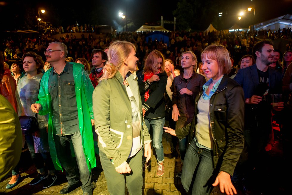 Началось всё на выступлении Tangology Orchestra. Ливень, молнии, гром. Дождя ждали все, как Петлюру в "Белой Гвардии". Кто не взял зонт - бросился покупать фестивальный - за тысячу рублей. Как нам стало известно, рентабельность производства фестивального зонта составляет около 20%: это по-божески. Но люди, тем не менее, не торопились уходить. Без шуток, тысячи гостей сидели на певческом поле Центрального парка под зонтами, в дождевиках, накрываясь пакетами и слушали джаз.