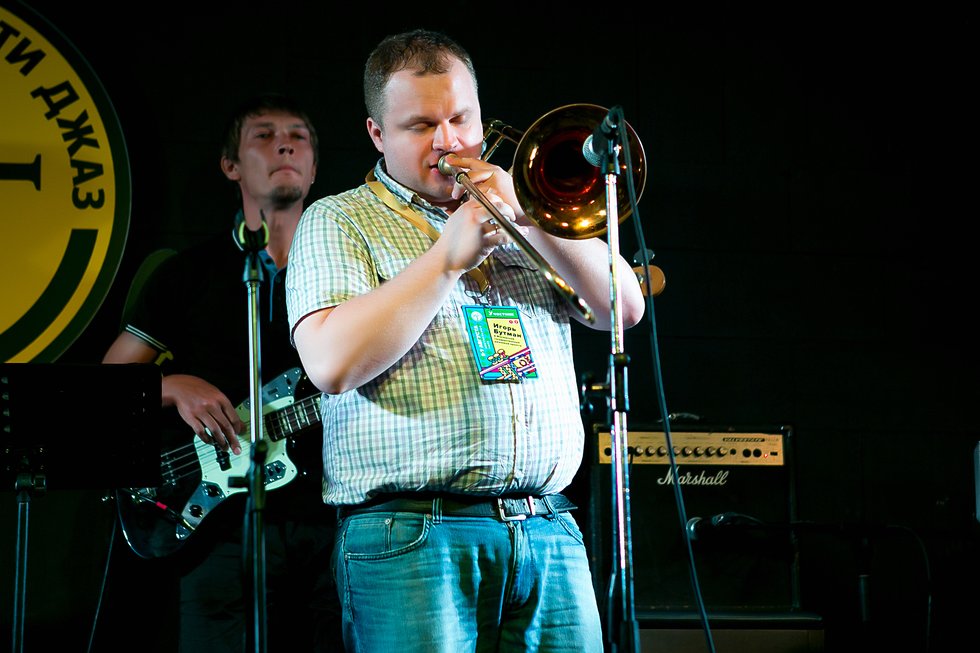 Тем временем на сцену выходит идеально по-джазовому выглядящий Игорь Бутман со своим оркестром. Девушки в ВИП-зоне, игриво закинув туфли на оградку, резюмируют: "На депутата похож, скажи?" Однако человек, чье имя по праву стоит на одном уровне с Олегом Лундстрёмом, больше в этот вечер похож на Зевса.