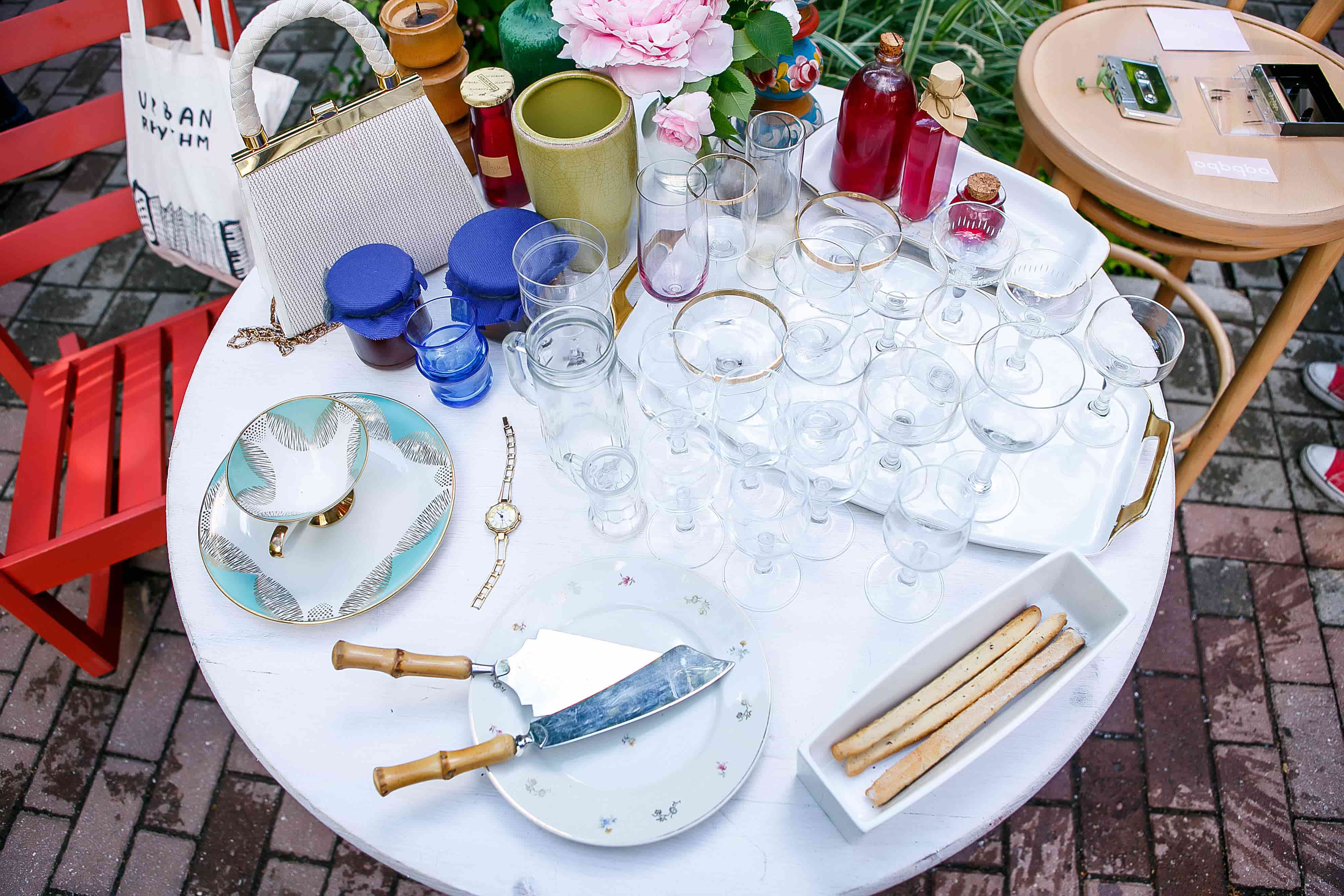 Целый стол антикварной посуды, привезенной с блошиных рынков из Германии, Украины и Литвы, предлагали создательницы шоу-рума Izba Женя и Вея. Сверкающие на редком субботнем солнце стеклянные рюмочки и бокалы с тонкими позолоченными полосками, фарфоровые тарелки, будто из сказочного чаепития, керамические вазы изумрудного оттенка, шпажки для фондю с аккуратными разноцветными ручками... Даже если вы никогда раньше не собирали посуду, нет никаких гарантий, что с барахолки вы не уйдете счастливым обладателем вазы из Львова.