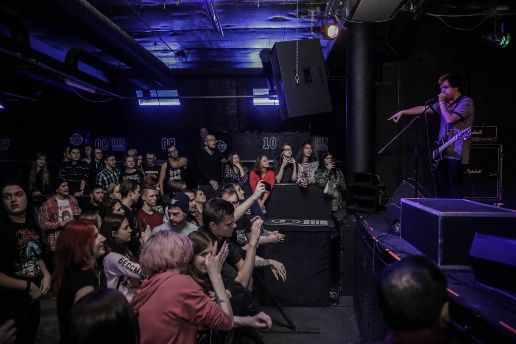 В восемь вечера с лишним возле клуба свободно – у входа можно обнаружить лишь троих человек. Возле гардеробной тоже немноголюдно – доносятся живые звуки сверху, из зала, и, надо полагать, всех уже сдуло к сцене. Но и у сцены плотняком стоят люди лишь в полтора ряда, остальные рассредоточены по залу, их не много – видимо, далеко не все поклонники хардкора могут и хотят (в отдельных случаях это дело принципа, переплетающегося с образом жизни) приобрести себе билет на выступление по стоимости средней или чуть выше неё. И то ли звёздность американцев не такая уж и яркая, то ли фактор, описанный чуть выше, имел в нашем городе больший вес, но, увы, выступление не собрало ожидаемое количество жителей. К слову, немноголюдно было и на концерте в северной столице России.