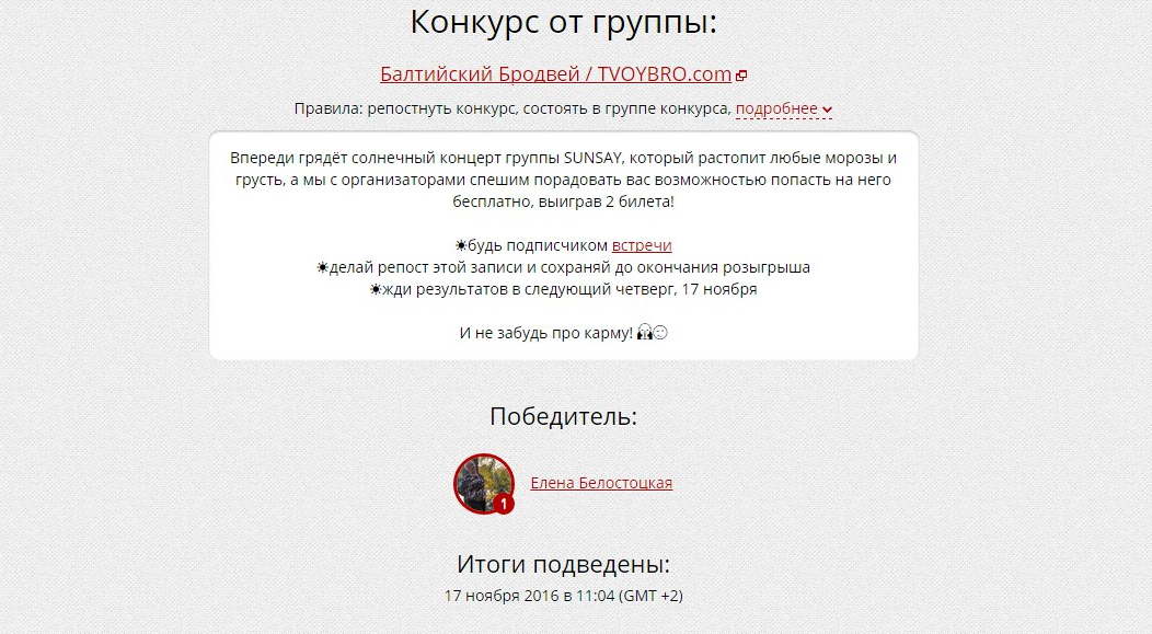 Забери свой билет, броИтоги розыгрыша пригласительных на концерт SUNSAY