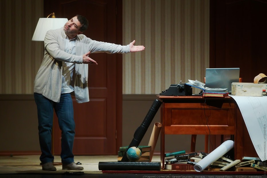 Евгений Гришковец на моноспектакле «Прощание с бумагой»