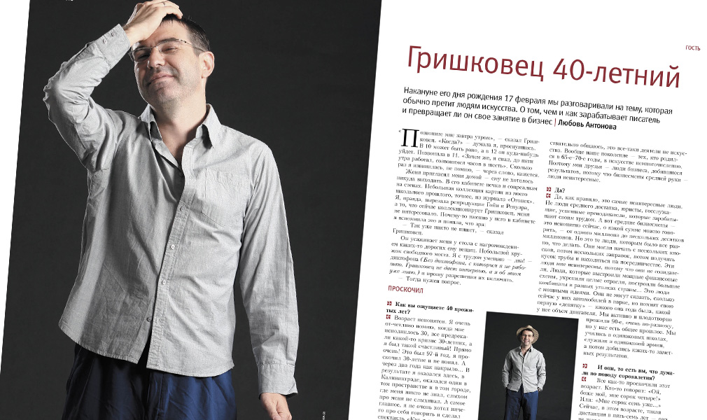 «Гришковец 40‑летний» называлось интервью, которое писатель, актер и режиссер Евгений Гришковец дал журналу «Королевские ворота» десять лет назад, аккурат под прошлый свой юбилей. С тех пор больше ни разу. Поэтому главный редактор «КВ» Любовь Антонова повторила некоторые вопросы, чтобы понять, что изменилось, и задала несколько новых - для того же