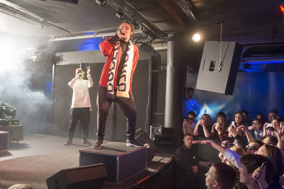 Верная публика знает и ждет своих героев. К началу восьмого часа несколько сотен подростков скандируют название объединения у сцены, с которой на небольшой громкости доносится хаус вперемешку с хитами участников DOPECLVB. Разодетая в пеструю одежду четверка из Уфы врывается в зал и пересекает помещение под одобрительные вопли поклонников. Оказавшись на сцене, рэперы стартуют с композиции под названием «GPRS» c припевом, в котором поется о том, что «Я недоступен для твоего рассудка». Взрослые не поймут хитрый шифр, на котором исполняется этот крикливый трэп с пробирающим до костей басом. «Я заблочен, твой брат не в силах взломать / Чистый хоуми, без прозвонов, на коннекте / Твои малли, твои парни любят связи, им нужны связи / Они пытаются двигаться прямо, но я недоступен», - читает артист Glebasta Spal, выступающий в белой бейсболке, поверх которой колышется арафатка.