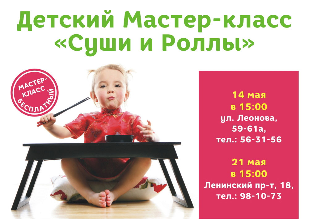 В финале мастер-класса вы сможете продегустировать приготовленные вашими детишками роллы. Расписание занятий: