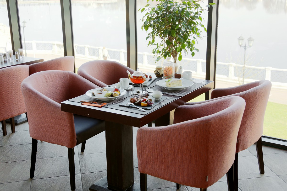 Обеденное предложение в «Огоньке» обновляется каждую неделю, так что это место всегда готово порадовать вас разнообразие вкусов. Обед за 265 рублей включает в себя суп+салат+горячее блюдо + свежеиспеченная чиабатта + напиток на выбор.Приятная прогулка по набережной озера и обед в кафе с шикарным видом на парк – залог отличного дня!
