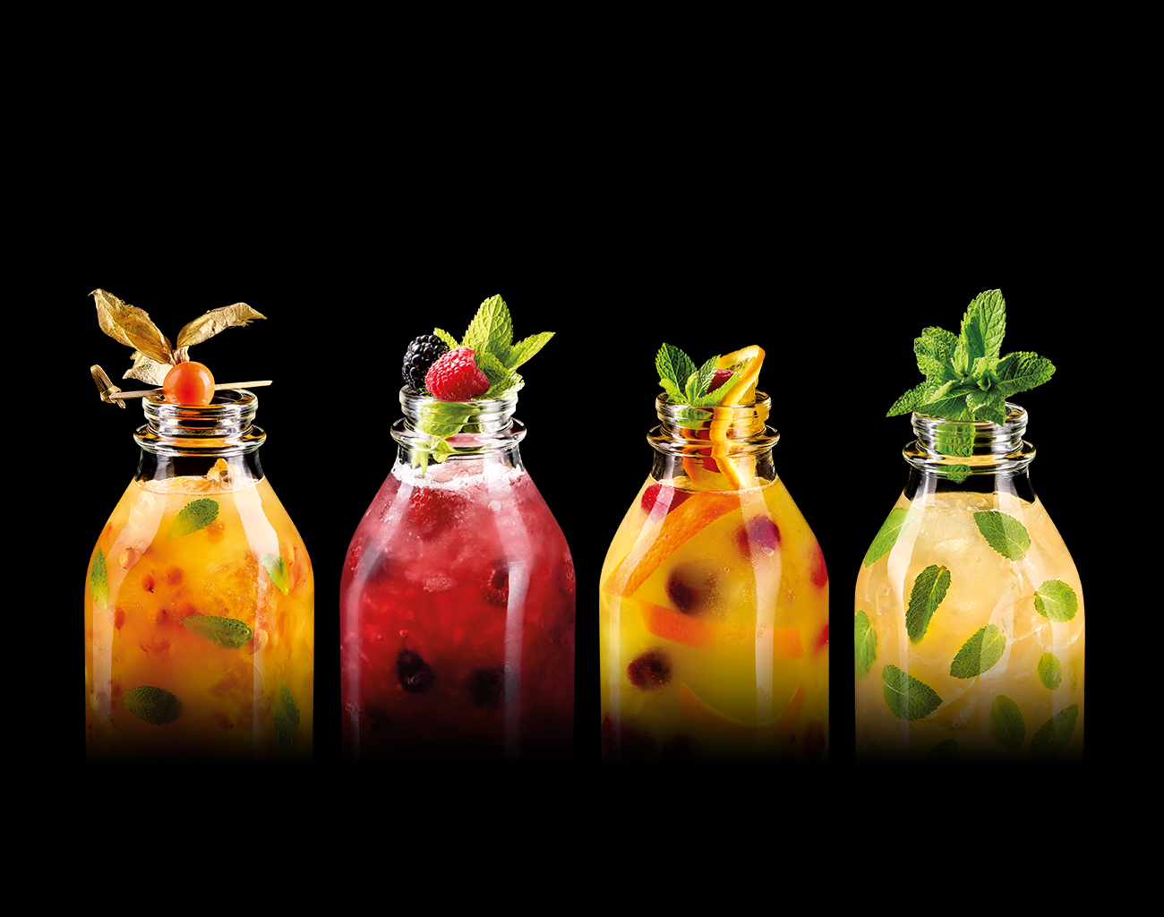Для вашего удобства лимонады подаются в эффектных и удобных бокалах (400 мл) и бутылках (900 мл), заказанных специально для обновлённой линейки освежающих напитков.