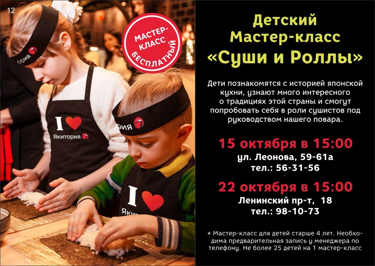 «Суши и роллы»«Якитория» приглашает на бесплатные детские мастер-классы!