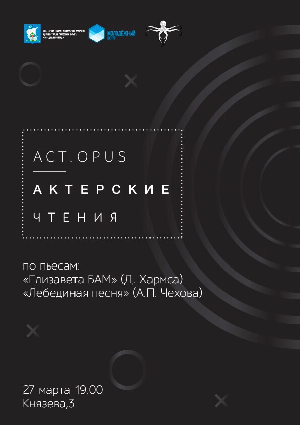 В честь и в счёт этого праздника театральная лаборатория Act.Opus проведёт актерские чтения двух сумасшедших пьес А.П. Чехова и Д. Хармса.