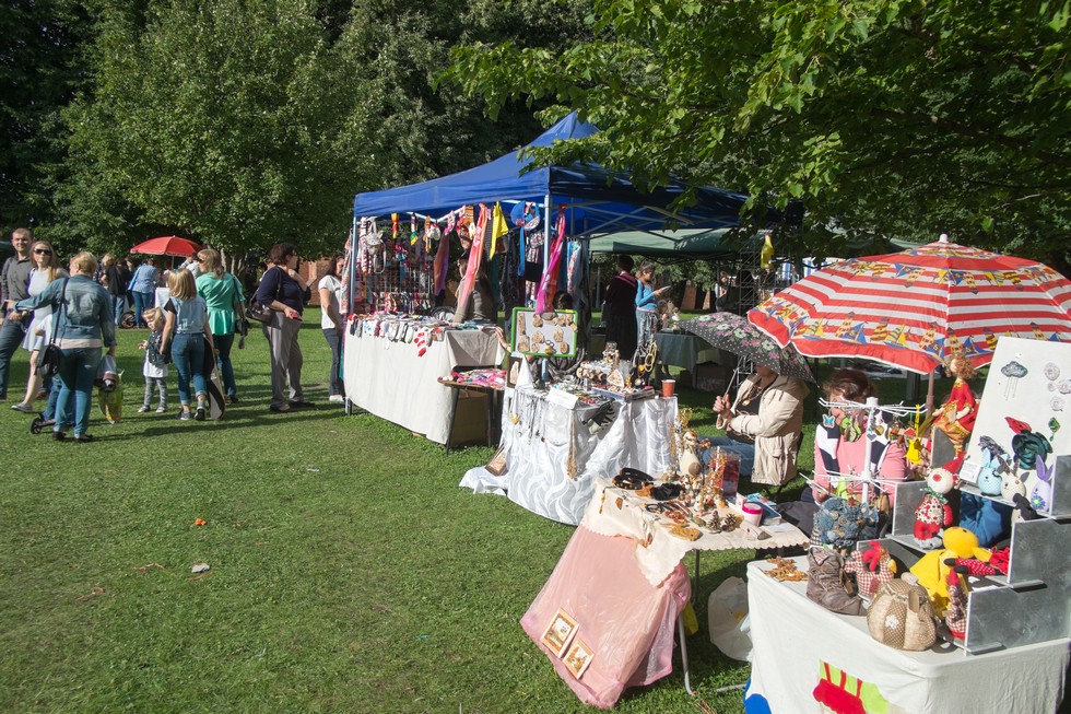 Спускаясь к острову с эстакадного моста, встречаешь неторопливо прогуливающиеся парочки. Воскресный день радует жаркой погодой, но людей не так много, и лавочки остаются свободными. Вскоре ветер доносит обрывки музыки – ярмарка расположилась на лужайке справа от собора. Бросая первый взгляд, испытываешь дежавю: вот ряженые, предлагающие пострелять из лука, вот мангал, на котором готовят шашлык, а вот десятки палаток, в которых продают рукоделие и всевозможные безделушки, включая вездесущие спиннеры. Такой набор развлечений можно было запросто встретить на «Территории мира» или праздновании дня города в прошлом году – и в том, и другом случае это вызывало стойкое желание пройти мимо.