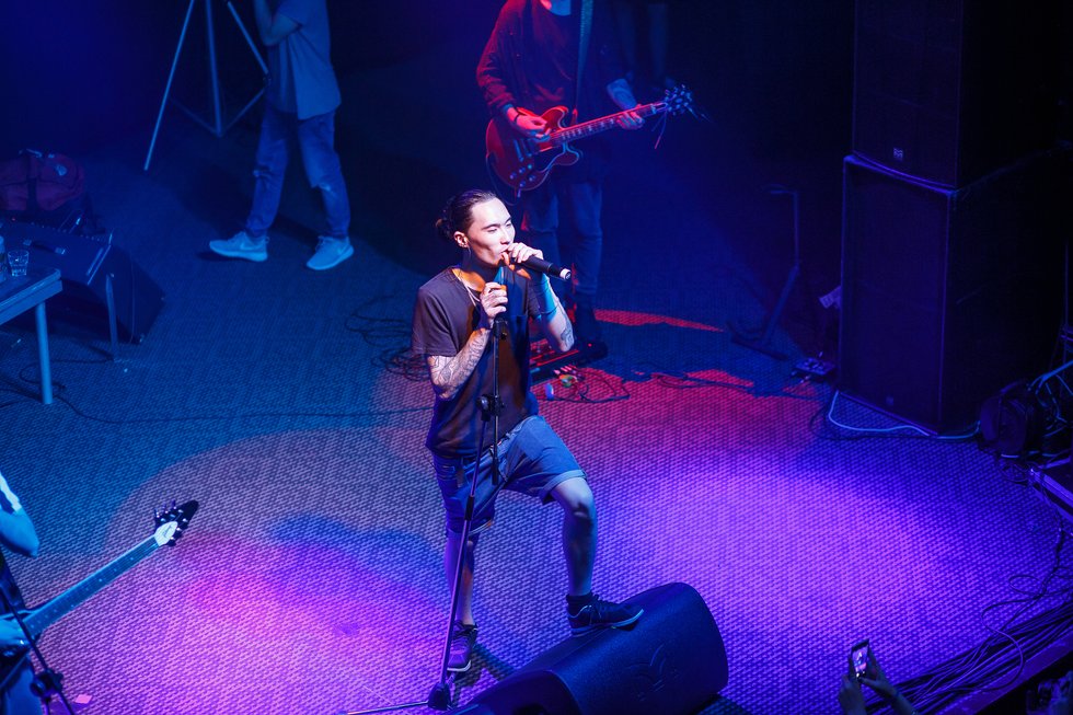 Почти всё выступление Скриптонит стоит где-то позади бэк-вокалиста и гитаристов, которые, несомненно, отлично выступают. Возможно, рэпер боится, что ему снова развяжут шнурки. И всё же не хватает зрительного контакта с тем, ради кого здесь все собрались. Толпа хаотично перемещается по залу в попытке найти точку обзора получше: половина фанзоны без наклона, и люди ростом ниже 180 сантиметров не видят ничего, кроме затылков и рук впереди стоящих. Почти половину концерта рэп-исполнителя плохо слышно, и дело тут не в дикции (ну, если только отчасти), а в низко настроенной громкости микрофона.