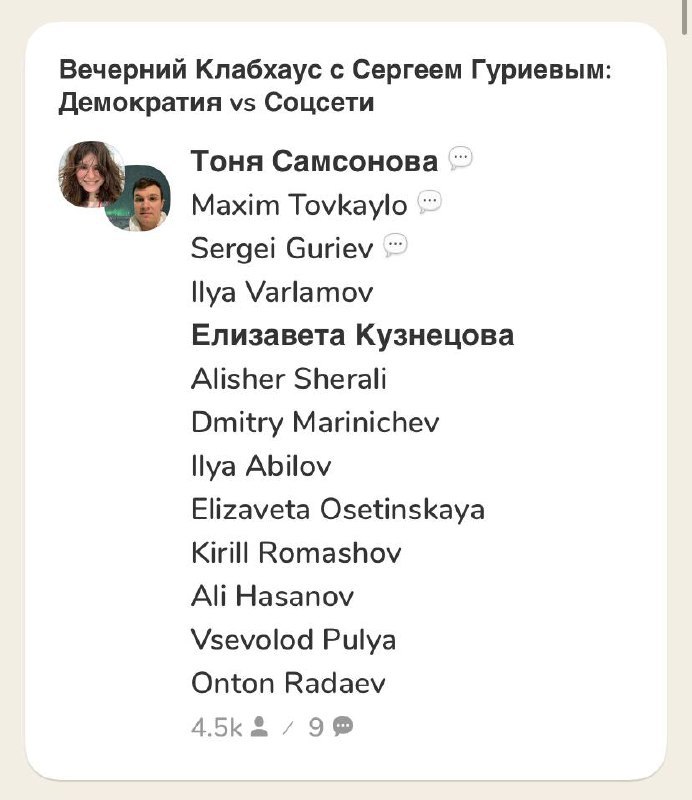 Комната с Сергеем Гуриевым стала самой популярной в российском сегменте Clubhouse после Олега Тинькова, который первым собрал 5000 слушателей — максимально возможную на тот момент аудиторию.