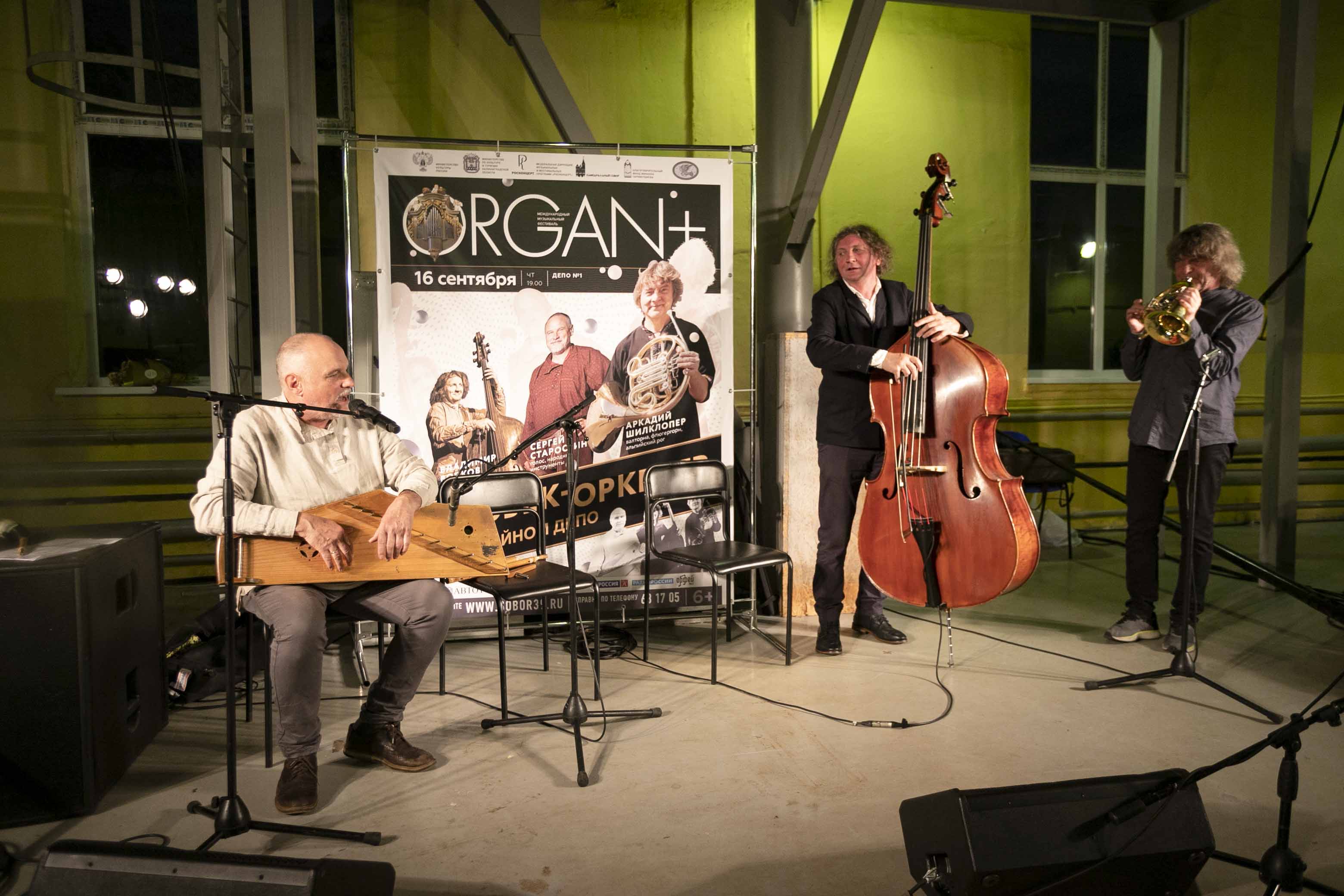 Проводить концерты в трамвайном депо — это тоже традиция, которая не теряет актуальности. Большой ангар с высокими потолками впечатлил своей масштабностью и акустикой. Здесь выступили музыканты из Москвы и Санкт-Петербурга — Аркадий Шилклопер, Сергей Старостин и Владимир Волков. Последний играл на контрабасе, а остальные не органичились чем-то одним: в арсенале Шилклопера были валторна, флюгергорн и альпийский рог, а Старостин играл на народных инструментах и пел. Он рассказал, как подбирался репертуар концерта.