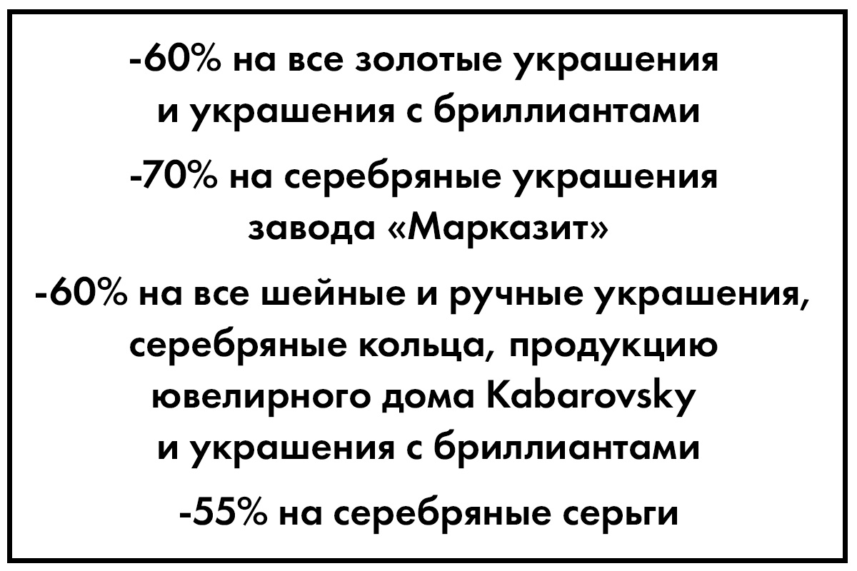 Одно из главных преимуществ LORAGOLD — сотрудничество напрямую с российскими заводами. Во-первых, благодаря этому покупатели могут быть уверены в качестве. Во-вторых, это даёт возможность устанавливать цены на украшения без наценки. А ещё таким образом магазин сам может выбирать интересных поставщиков. Недавно салон получил эксклюзивное право на представление коллекций костромского ювелирного дома Kabarovsky. В связи с этим с 1 по 31 июля пройдёт акция*: все покупатели салона смогут поучаствовать в розыгрыше призов от бренда. Можно будет выиграть золотое или серебряное украшение, а также большую корзину с деликатесами из Костромы. А в конце июля в Калининград приедут представители дома Kabarovsky, которые не только подведут итоги конкурса, но ещё и организуют бесплатные мастер-классы для всех желающих.