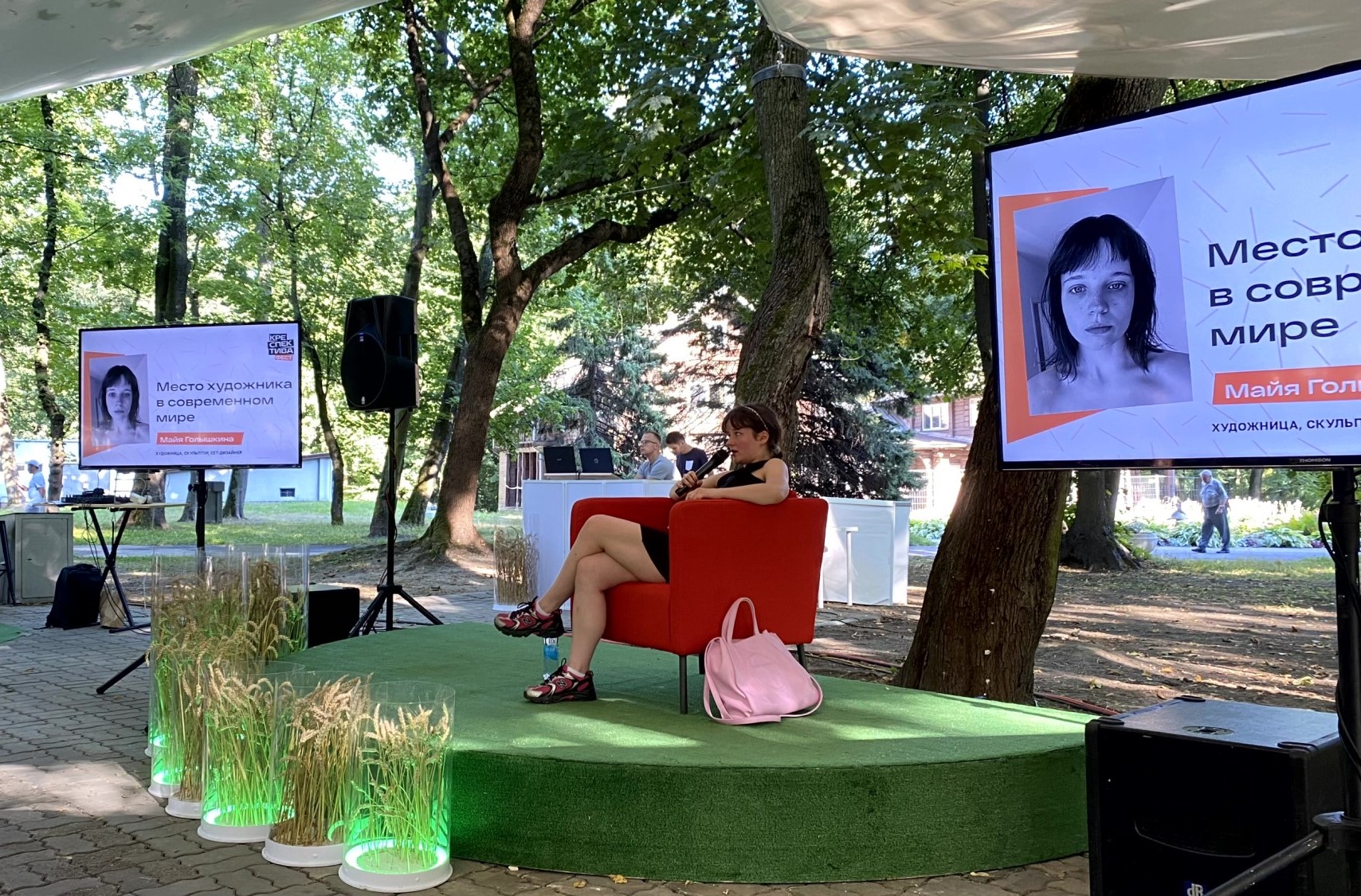 В Центральном парке культуры и отдыха продолжается фестиваль «Креспектива Фест». Здесь прошла лекция о месте художника в современном мире перспективной московской художницы Майи Голышкиной. Она рассказала о том, какие люди идут в художники, способах вдохновения, роли профессионального образования и размышлениях о современном поколении. Корреспондент «Твоего Бро» собрал главные цитаты лектора фестиваля.