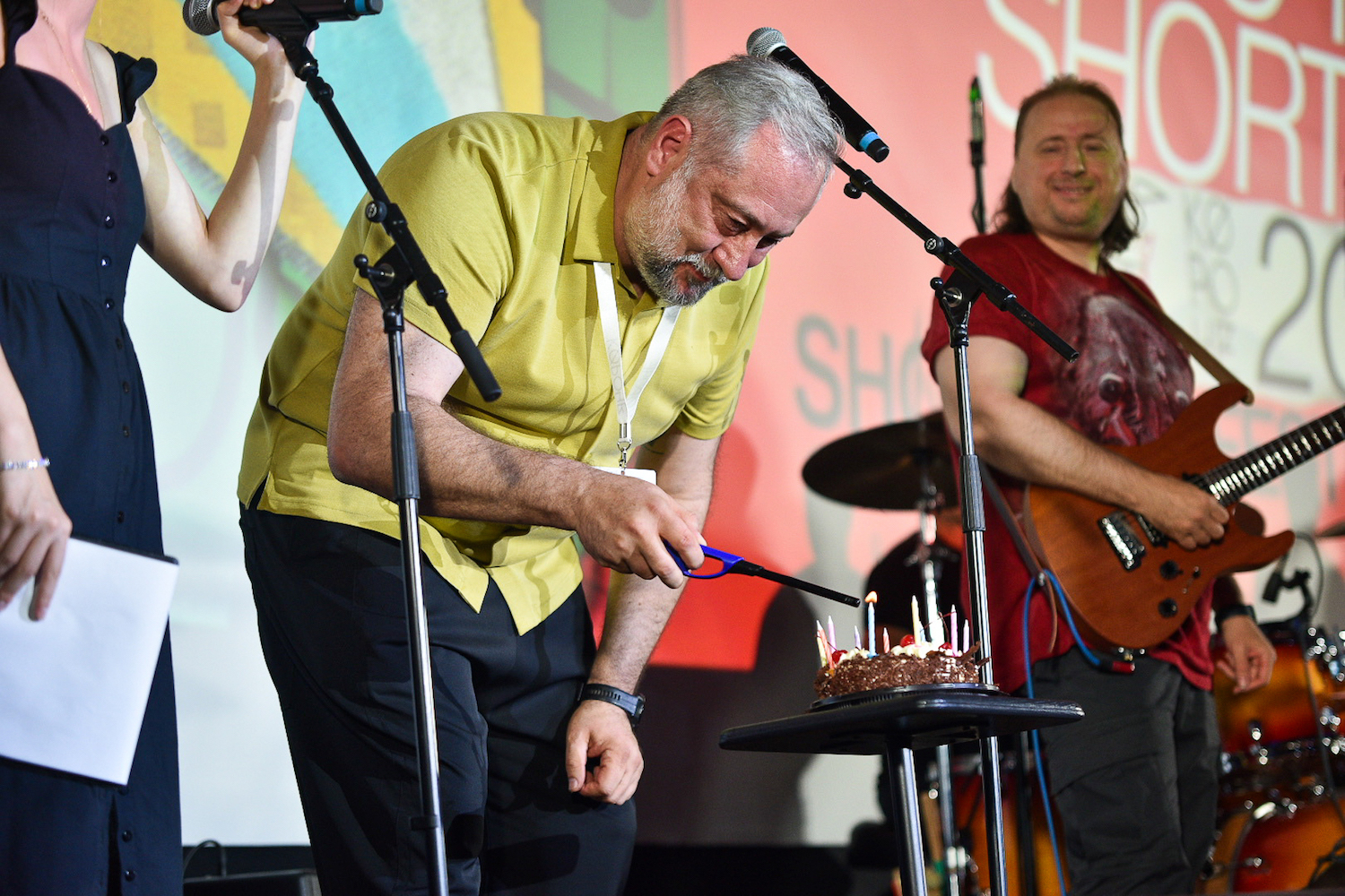 После слов приветствия и новостей вынесли праздничный торт. Пока зажигались свечи, гости фестиваля загадали желание и на счет «три» все вместе задули свечи.