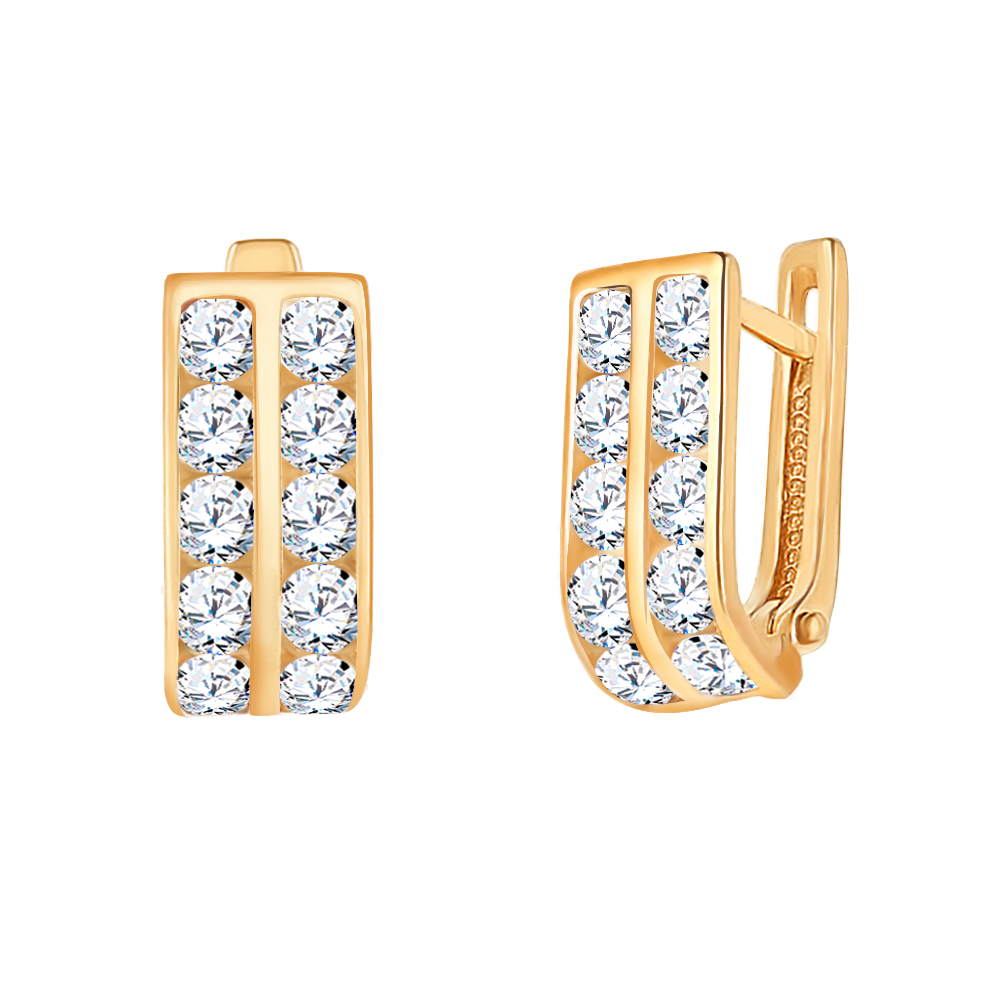 Серьги с английской застёжкой. Дужка фиксируется в мочке уха с помощью пружинного зажима. Она надёжна, и риск потери украшения минимален. При этом перед покупкой такие серьги лучше примерить, чтобы точно подобрать длину штифта, проходящего сквозь мочку.