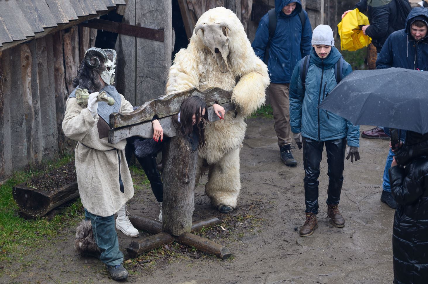 Гостей встречали черти, облачённые в звериные шкуры и маски. Они взаимодействовали с каждым: в шутку воровали шапки, подкрадывались за спину и пугали, бегали за детьми и обнимали их. Иронично, но черти даже помогли разрешить семейную ссору брата и сестры.