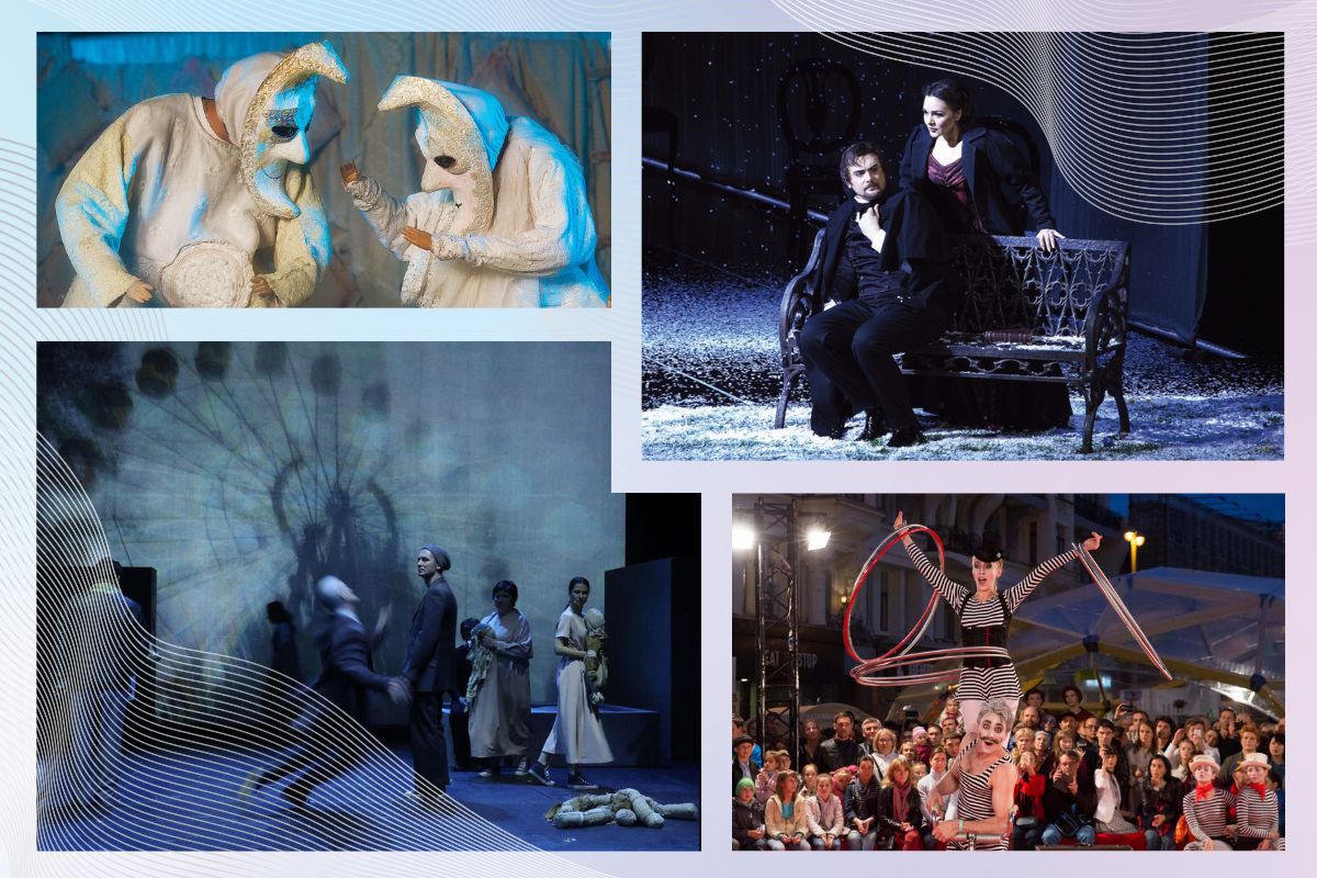 В основной части мероприятия зрители увидят четыре постановки. Их представят труппы Большого театра России, Cанкт-петербургского БДТ имени Георгия Товстоногова, Московского еврейского театра «Шалом» и танцевального театра «Фора» из Екатеринбурга.